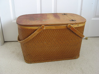 I spotted this picnic basket across the room when I was literally in mid-sentence, and I had to say, "hang on!" and run to get it! It's quite large and even has a removable shelf inside that I assume is to keep crushable food safe. The top has some water damage and needs cleaning, but otherwise it's in good shape. $2.99